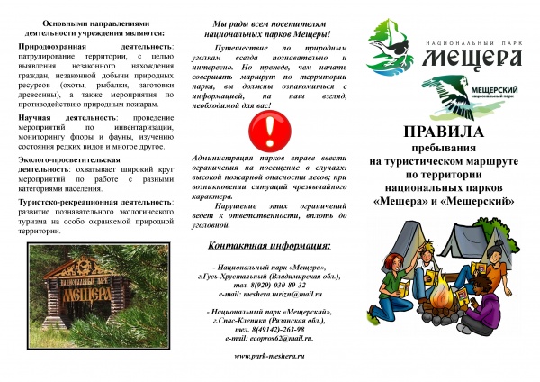Основными направлениями деятельности парка «Мещера» являются: природоохранная, научная, эколого-просветительская и туристско-рекреационная.
